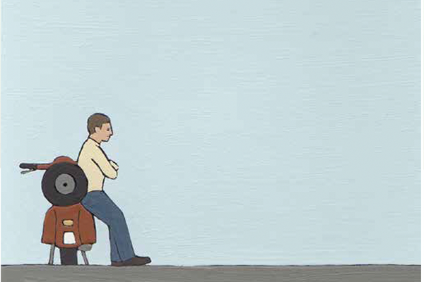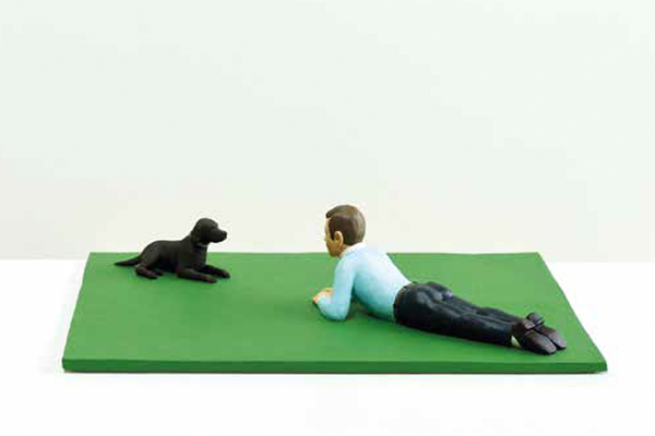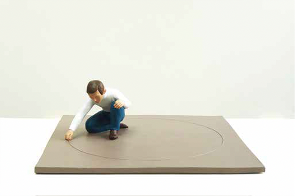 Vediamo così una vespa e il suo proprietario fermi sul ciglio di una strada, camerieri al lavoro, bagnanti sulla spiaggia, atleti impegnati nelle loro performance. Gli elementi di sfondo sono sempre appena accennati e non forniscono che dati minimi: una parete, un prato, un cielo, un muretto, una colonna. Sono dettagli di una precisa sensibilità estetica, oggetti modesti e discreti che ritornano ricorsivamente nelle opere di Crippa sino a caratterizzarne l’identità, indizi di una loro possibile natura sovratemporale. A prevalere nella reiterazione delle figure dell’artista e dei suoi personaggi è un minimalismo mite, attraverso il quale Crippa sembra raffigurare il fremere di uno sguardo d’incanto sulle cose, sprigionando una forza sottilmente eversiva: l’intensità anonima della vita urbana, la gioia misteriosa di sentirsi uno tra i molti, liberi e soli.
